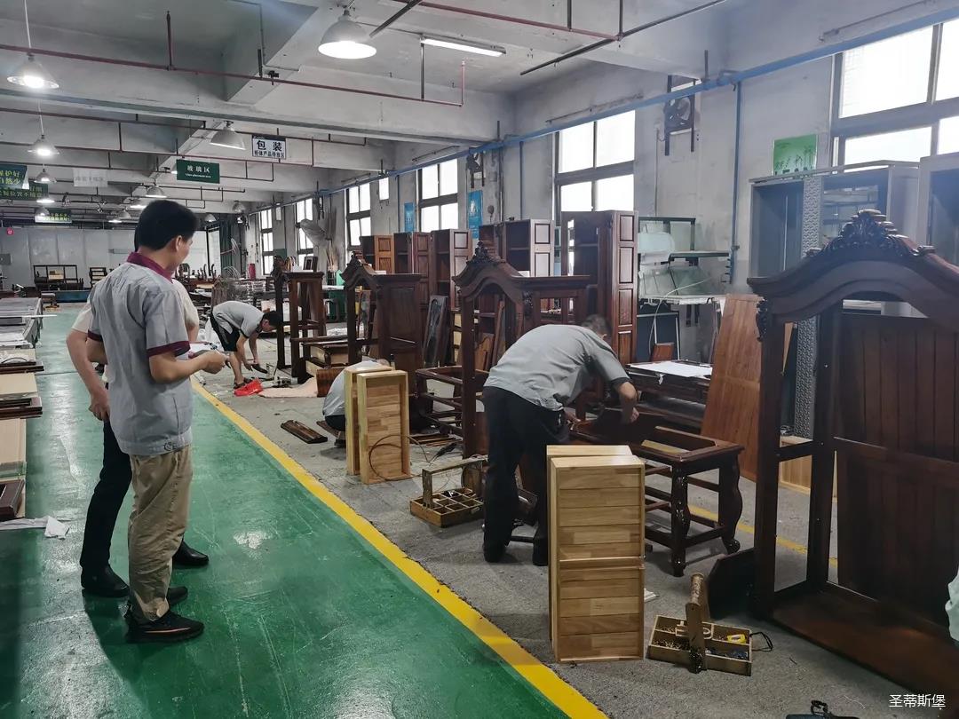 本届技能竞赛设置为工业组和商业组,共设竞赛项目8项,其中,工业组竞赛包含了打滚边、打铜钉、自身产品组装、成品组装、柜体喷底色、修色、板材开料等七大细项。商业组以组装办公台、床头柜为主。